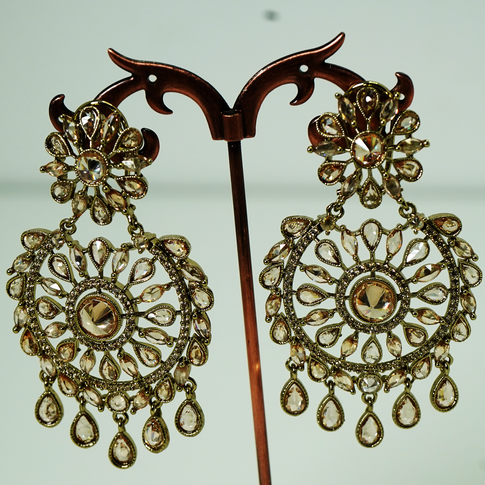 Add a regal touch to your ensemble with this exquisite Zara gold-toned Kundan earrings. Adorned with intricate teardrop crystals, this set is perfect for weddings, festive occasions, and traditional ceremonies, offering a blend of heritage and elegance.